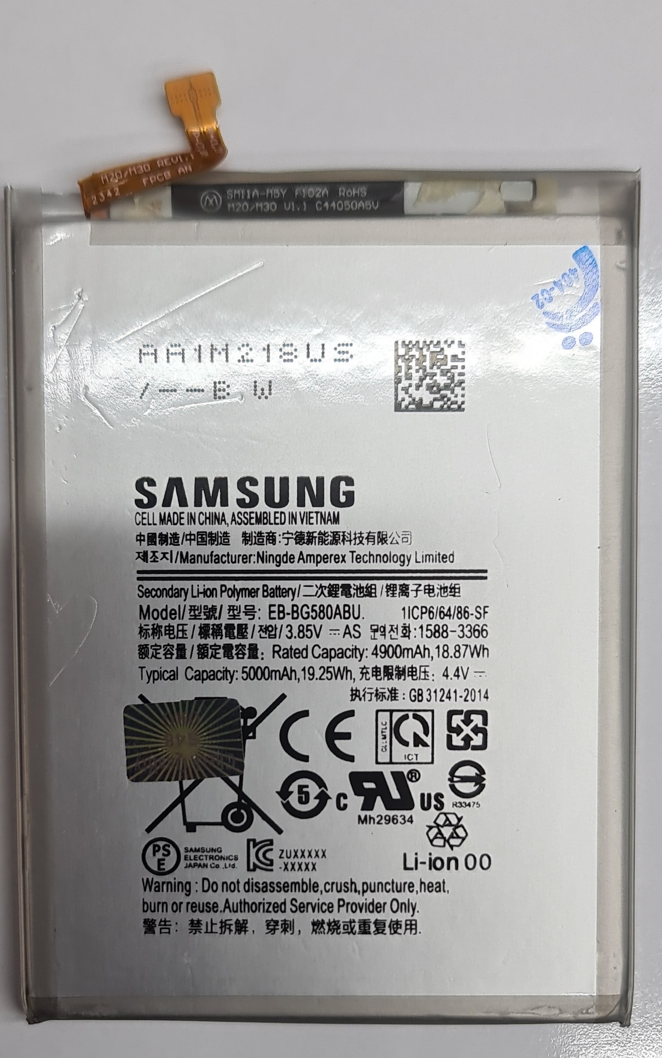 مدل:EB-BG580ABU ظرفیت: 5000میلی آمپر ساعت باتری 130 درصد سوپر سل کیفیت عالی گارانتی: شش ماه بی قیدوشرط حتی بادکردگی